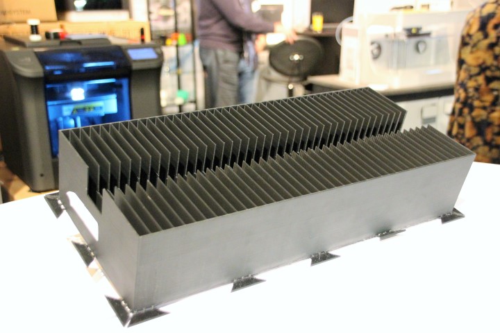 Een voorbeeld van een groot product met veel dunne opstaande wanden, 3D geprint op de grote machine.