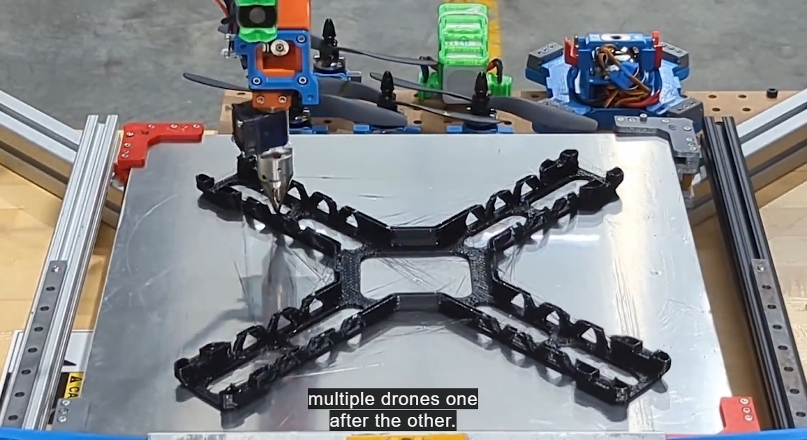 Studenten van het DREAMS lab van Virginia Tech zijn erin geslaagd een 3D printer annex productie-installatie te bouwen waarop een drone volledig wordt geprint en afgebouwd. Zodra het laatste schroefje is aangedraaid door de robot, vliegt de drone van het printplatform weg.
