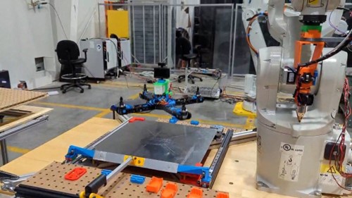 De eerste oplossing die de studenten van de Amerikaanse universiteit hebben ontwikkeld, is het integreren van een 3D printkop op een robot. “Door een printkop te koppelen aan meerassige industriële robotarmen krijgen we extra vrijheidsgraden waardoor we eindelijk echt in 3D kunnen printen,” legt professor Williams uit. “In plaats van gewoon een reeks tweedimensionale afdrukken van elke laag te stapelen, stelt de kinematische flexibiliteit van de robotarm ons in staat materiaal in elke richting in de 3D-ruimte te deponeren.” De robotarm bood bovendien de kans om andere gereedschappen te integreren, bijvoorbeeld voor de assemblage van onderdelen die niet geprint kunnen worden. Terwijl de boddy van de drone wordt geprint, plaats de robotarm de onderdelen zoals motor, batterijen en de kabelboom.