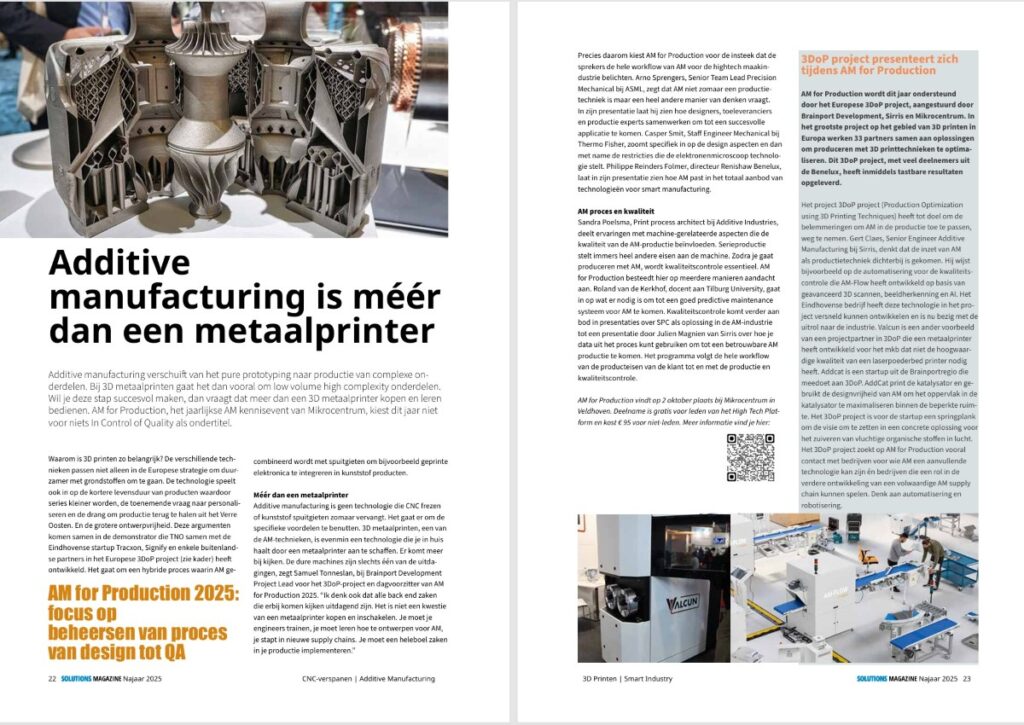 Additive manufacturing verschuift van het pure prototyping naar productie van complexe onderdelen. Bij 3D metaalprinten gaat het dan vooral om low volume high complexity onderdelen. Wil je deze stap succesvol maken, dan vraagt dat meer dan een 3D metaalprinter kopen en leren bedienen. AM for Production, het jaarlijkse AM kennisevent van Mikrocentrum, kiest dit jaar niet voor niets In Control of Quality als ondertitel.