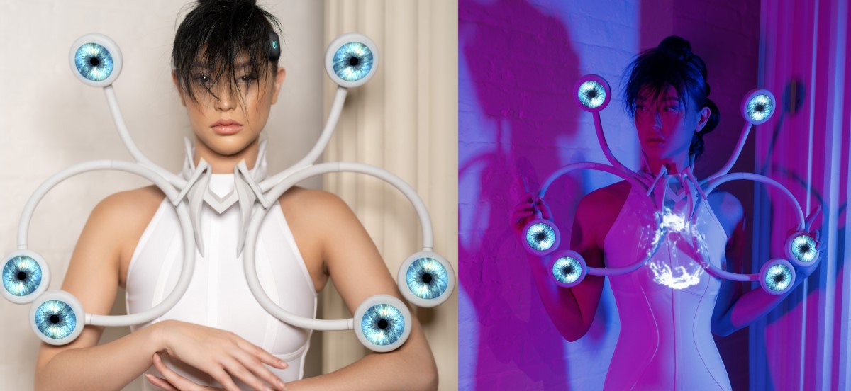 Deze signalen worden opgepikt met een nieuwe geavanceerde EEG-sensor die een draagbare brein-computerinterface (BCI) vormt. De EEG-sensor is een nieuwe 4-kanaals BCI-headset, Unicorn Headband genaamd, ontwikkeld door NeuroTech-bedrijf g.tec met hulp van de ontwerper. De interface gebruikt Machine Learning om de mentale werkbelasting te bepalen. Een twee minuten durende trainingssessie volstaat als de jurk voor de eerste keer gedragen wordt. De werklast wordt vervolgens in real-time weergegeven op de zes ronde displays die uitwaaieren vanuit het halsstuk van de jurk. Als de mentale belasting toeneemt en het verzadigingspunt bereikt, laat elk scherm een iris en pupil zien die steeds wijder wordt. Dit creëert een buitenaards schouwspel met ogen.