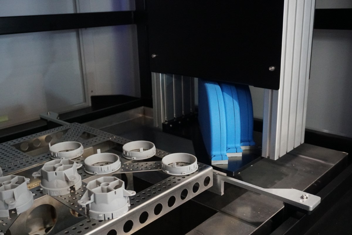 Het tweede voorbeeld van innovatie die voortkomt uit samenwerking is helemaal een concept uit de Brainport regio. AM-Flow wist op Fornnext met de live demo’s van het AM-Quality systeem de aandacht van menig 3D printbedrijf te trekken waar de productie in de grote aantallen loopt. AM-Quality scant met 8 laserlijnscanners van Hexagon binnen enkele seconden het werkstuk van alle kanten in een 50 µm resolutie. De machine is ontwikkeld door het team van AM-Flow op de Brainport Industries Campus samen met Sioux en Hexagon, dat tevens speciale meetsoftware integreert.