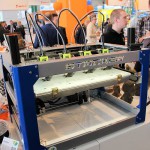 De Stacker, een in Amerika ontwikkelde 3D printer. Bij de ontwikkeling is vanaf het begin naar de industrie als doelgroep gekeken. Gijs Houdijk van Colorfabb: “De Stacker is een modulair systeem, dat uitgebreid kan worden in hoogte zodat je tot 60 centimer hoog kunt printen. En de printer wordt met 4 koppen geleverd, waarmee je echt kleine series kunt gaan printen.” Deze koppen printen parallel of kunnen afzonderlijk uitgeschakeld worden zodra je een groter werkstuk wilt 3D printen. Ook kan softwarematig per kop de temperatuur anders ingesteld worden. In theorie kun je zo in één keer vier verschillende materialen printen. Een andere verbetering ten op zichte van andere 3D printers is, aldus Gijs Houdijk, dat de printkop zodanig is geconstrueerd dat lekken niet meer kan voorkomen.