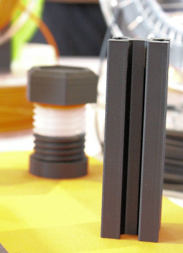 De Stacker, een in Amerika ontwikkelde 3D printer. Bij de ontwikkeling is vanaf het begin naar de industrie als doelgroep gekeken. Gijs Houdijk van Colorfabb: “De Stacker is een modulair systeem, dat uitgebreid kan worden in hoogte zodat je tot 60 centimer hoog kunt printen. En de printer wordt met 4 koppen geleverd, waarmee je echt kleine series kunt gaan printen.” Deze koppen printen parallel of kunnen afzonderlijk uitgeschakeld worden zodra je een groter werkstuk wilt 3D printen. Ook kan softwarematig per kop de temperatuur anders ingesteld worden. In theorie kun je zo in één keer vier verschillende materialen printen. Een andere verbetering ten op zichte van andere 3D printers is, aldus Gijs Houdijk, dat de printkop zodanig is geconstrueerd dat lekken niet meer kan voorkomen.
