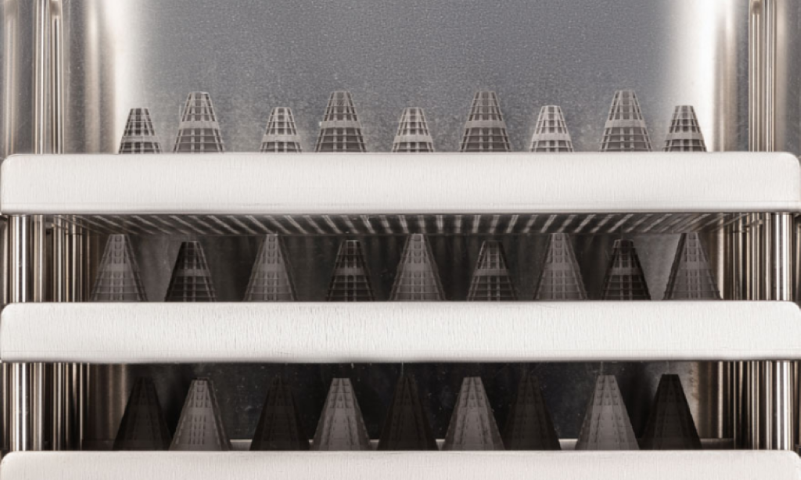 Naast de standalone Studio System+ voor 3D metaalprinten brengt Desktop Metal ook de Studio Fleet oplossing op de markt. De klant kiest voor meerdere 3D printers die gebundeld worden met een of twee debinderstations en sinterovens. Hiermee vult men het gat qua productiviteit tussen Studio System+ en het Production System. “Er is nu een kleine overlap tussen beide systemen. Klanten moeten voor hun product de sweetspot zoeken”, zegt Jonah Myerberg. Het echte Production System, dat met poeders werkt en pas eind 2019, begin 2020 op de markt zal komen, is weliswaar sneller, maar is met name bedoeld voor grote series. Doordat het materiaal goedkoper en recyclebaar is, vallen de kosten per stuk lager uit. “Het Production System is bedoeld voor bedoeld voor tonnen poeders per jaar”, aldus Myerberg. Voor low volume productie is juist de Studio Fleet de beste oplossing, zeker als je deze 3D printers inzet in een 3D printerfarm. Dan ontstaat er veel productiecapaciteit met de flexibiliteit om enkel stuks en kleine series producten te combineren, vooral in de postprocessing zolang hetzelfde materiaal wordt gebruikt.