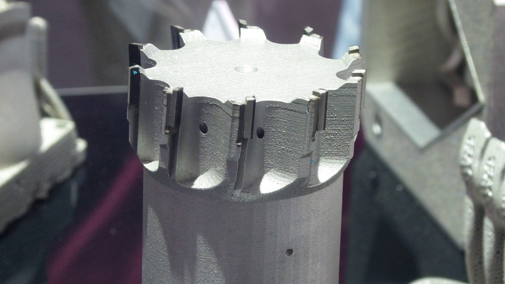 FOTO: een PKD frees 3D geprint met de Lasertec 12 SLM. De frees bevat interne koelkanalen.