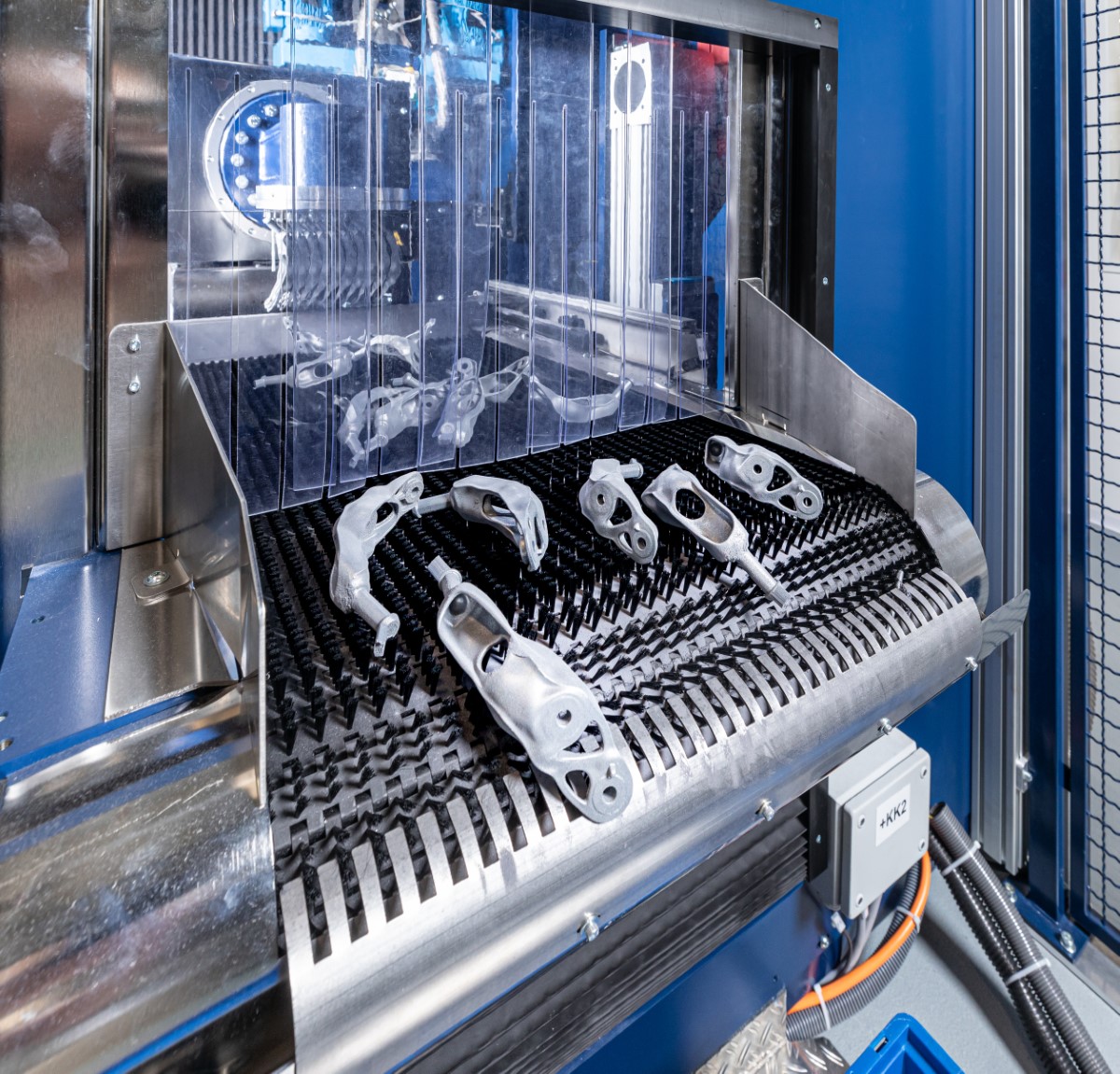 Deze centrale aansturing van de hele lijn is wezenlijk omdat aan de hand van de gemeten data automatisch de kwaliteit wordt bewaakt. Sensordata uit de 3D metaalprinter worden vertaald naar informatie over de kwaliteit van het opbouwen van het werkstuk in de machine. Ook alle nabewerkingstappen zijn gekoppeld. Hiervoor zijn volautomatische modules ontwikkeld, zoals deze nu in de BMW fabriek staan op de Additive Manufacturing Campus in Oberschleissheim. Hier print BMW met DP600, een hoogsterkte staal van GLN PM, op een EOS M300-4 systeem. Het transport tussen de verschillende stations in de productielijn gebeurt volledig autonoom. Een vergelijkbare productielijn staat in Bonn bij GKN, een toeleverancier aan de automobielindustrie.