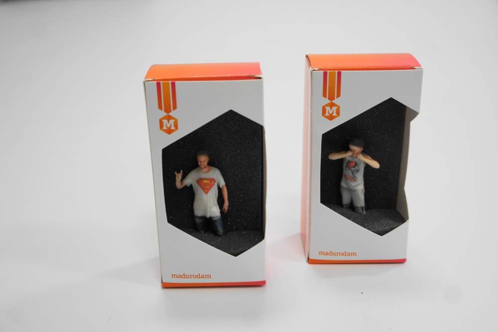 Marketiger 3D print alle figurines voor Madurodam. Bezoekers kunnen zich laten scannen, Marketiger zorgt dat ze enkele weken later een figurine van zichzelf per post ontvangen. “Madurodam verkoopt de bezoekers een herinnering aan een mooi moment. En dan moet je zeker zijn dat de figurine ongebroken bij de klant aankomt via de post, wat bij gips producten vaak fout gaat. En de printkwaliteit en de kleuren moeten consistent zijn; print na print. Want anders is de klant niet happy,” zegt Maikel de Wit. Deze toepassing ontwikkelt zich zo goed, dat hij denkt op een totaal van meer dan 10.000 figurines per jaar uit te komen.