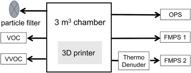 Zij hebben een testopstelling gebouwd, 3D geprint met materialen uiteenlopend van ABS, PETG tot en met HIPS. Filamenten met een printtemperatuur van 240 tot 290 graden C. Tegelijkertijd hebben ze een aantal zaken gemeten, zoals de hoeveelheid fijnstof die vrijkomt en de emissie van vluchtige stoffen. Volgens de onderzoekers hebben zij voor het eerst aangetoond dat er weliswaar grote verschillen bestaan tussen de materialen, maar dat je een verhoogde concentratie fijnstof (Particle Number Concentration) wel kunt meten in bepaalde situaties. De 3D printer die ze hiervoor hebben gebruikt, is een Zortrax M200, met gesloten zijkanten maar aan de bovenkant open. Voor de metingen zelf hebben ze de 3D printer in een roestvrij stalen gesloten container van 3 m3 geplaatst. De instromende lucht is gefilterd.
