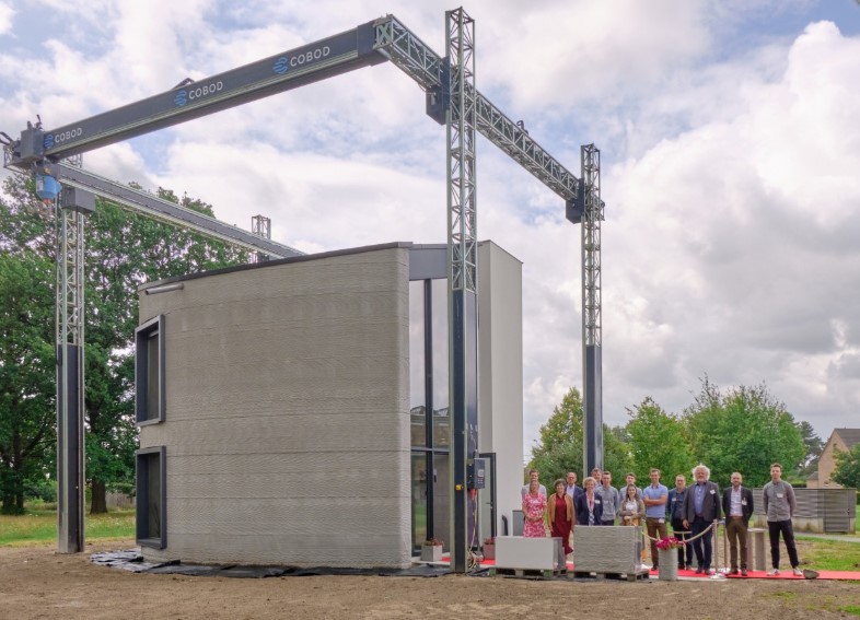 In België is het eerste huis met twee verdiepingen volledig 3D geprint. Hiervoor heeft het centrum voor duurzaam bouwen Kamp C de grootste 3D betonprinter van Europa ingezet. Bijzonder is dat de hele woning als één gebouwschil werd geprint.