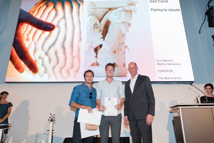 Voor de 3D Pioneer Challenge op het Duitse beursduo hebben ze twee projecten ingestuurd: Salt Coral en Palmyra rebuilt. De Syrische historische stad Palmira is door IS grotendeels verwoest. Concr3de heeft een ornament opnieuw geprint met het zelf ontwikkeld proces. Zou de start-up over een grotere 3D betonprinter beschikken, dan zou het grotere ornamenten en pilaren opnieuw kunnen printen. De jury was onder de indruk van het materialenonderzoek dat de Nederlandse 3D print pioniers voor deze projecten hebben gedaan. Ook het gebruik van lokale materialen die overal in de wereld beschikbaar zijn, om transport en daarmee CO2 uitstoot te vermijden wordt door de jury geprezen. “Dit kan zelfs invloed hebben op de toekomstige architectuur”, aldus het juryrapport. Concr3de heeft een prijs gewonnen van € 3.000.
