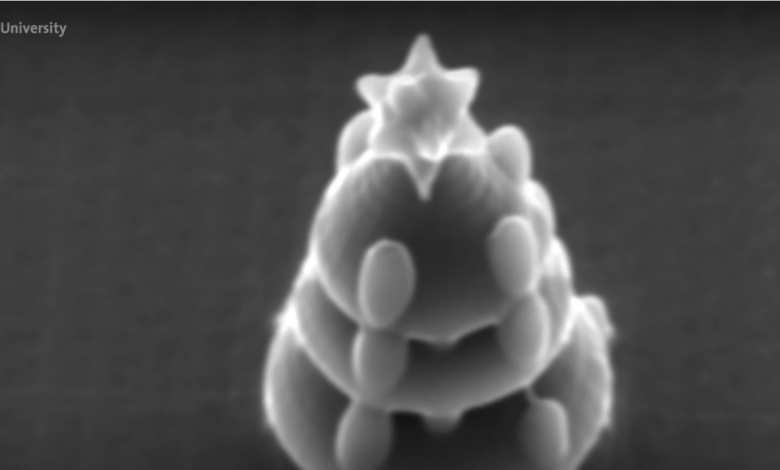 Twee PhD-studenten van het Maastrichtse MERLN Institute hebben de kleinste kerstboom ter wereld geprint. Het kerstboompje is slechts 10 micron groot. Je kunt het alleen onder een elektronenmicroscoop zien.