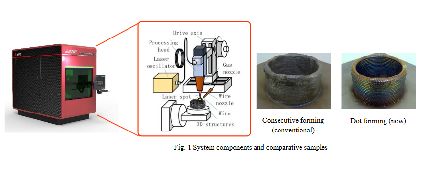 In een persbericht zegt Mitsubishi Electric dat het op een dusdanige wijze lasertechnologie met CNC-besturingstechnologie combineert, dat de vormnauwkeurigheid van het geprint materiaal beter is dan de bestaande additive manufacturing systemen op basis van lasdraad smelten. Het probleem is als je materiaal print op de vorige laag die nog onvoldoende is afgekoeld, de onderste laag iets inzakt onder z’n eigen gewicht waardoor de nauwkeurigheid afneemt. En dat gebeurt volgens de machinebouwer bij de bestaande systemen omdat de laserstraal continu over het werkstuk beweegt, waardoor de temperatuur in het al opgebouwde deel stijgt. Om dit te voorkomen gebruikt de fabrikant een gepulste laser en minimaliseert men de warmte-inbreng.