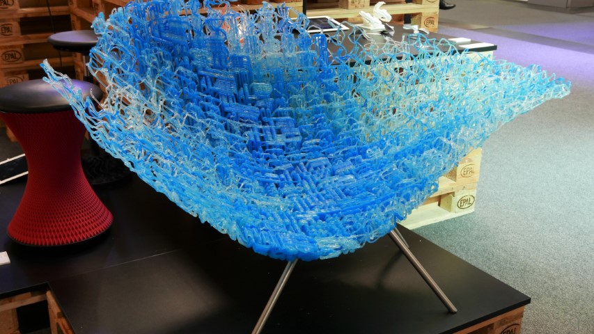 De Voxelchair is een van de inzendingen voor de 3D Pioneers Challenge waarin designers de mogelijkheden van 3D printen tonen.