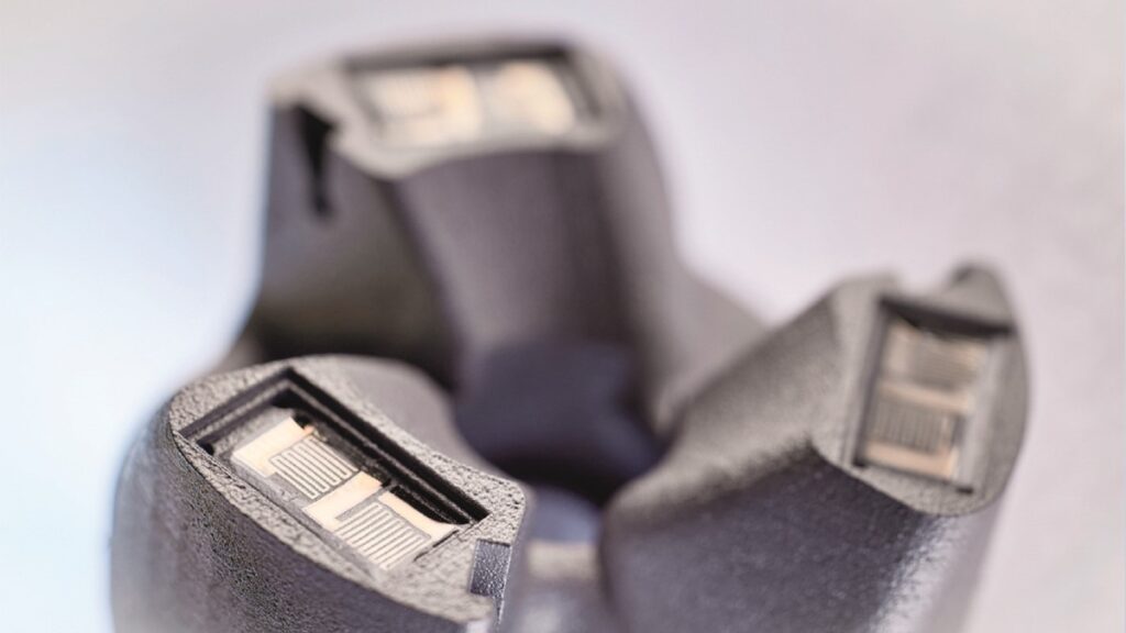 Een andere recente ontwikkeling binnen het onderzoeksinstituut is het integreren van sensoren in 3D metaal geprinte componenten, bijvoorbeeld rekstrookjes in LPBF componenten. De sensorlagen worden gemaakt met inkjet, aerosoljet of tampondruk; de sensoren kunnen tijdens of na de assemblage worden aangebracht en nauwkeurig worden gepositioneerd. De slimme componenten die op deze manier worden gefabriceerd, leveren real-time gegevens over de belasting, vervorming of beginnende scheurvorming.