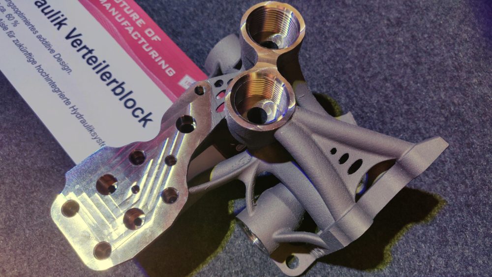 Onalngs toonde Premium Aerotec nog dit manifold, geprint voor Airbus. Dat gebeurde bij de afsluiting van het NextGenAM project, waarbij Premium Aerotec samen met Airbus en Mercedes aan de industrialisatie van 3D metaalprinten heeft gewerkt. Lees daarover hier verder.