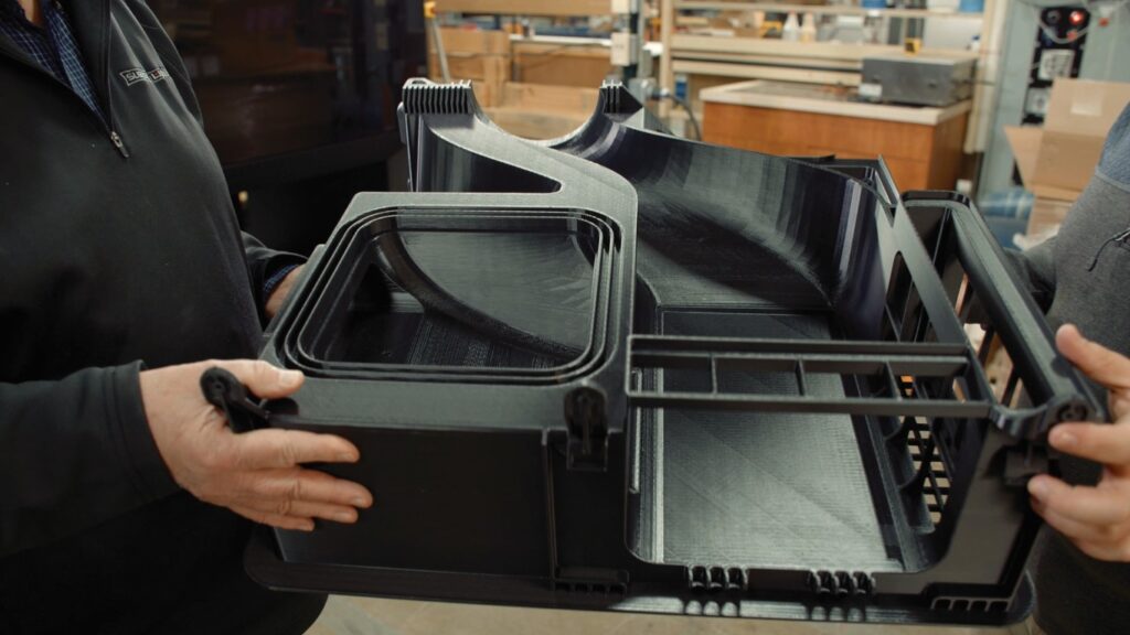 Met de poederbedprinter SAF H350 en de Stratasys Origin One, die op ruim 100 punten is verbeterd, heeft de fabrikant twee nieuwe AM-systemen in huis voor de productie van onderdelen voor eindtoepassingen. Deze waren al eerder aangekondigd. De derde oplossing voor maakbedrijven is de nieuwe F770. Deze 3D printer, aangestuurd vanuit GrabCAD, onderscheidt zich met name met het grote bouwvolume met 1000 mm in de X-richting en 610 mm in Z- en 610 mm in de Y-richting. De filamentrollen – ABS en ASA gecombineerd met wateroplosbaar support – geven de 3D printer een autonomie van ongeveer 140 uur.