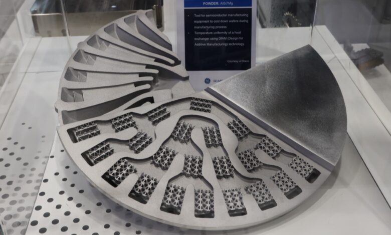 Foto: een studie van GE Additive naar het printen van een waferchuck met geïntegreerde koelkanalen. Het onderdeel is geprint op een Concept Laser M2 Series 5.
