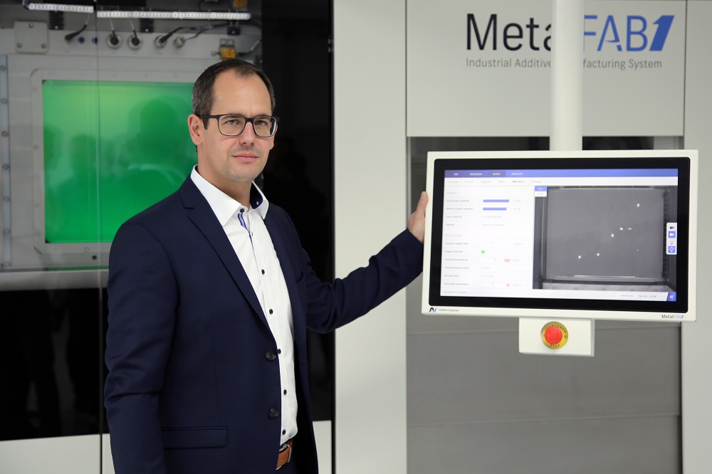 FOTO: Christoph Hansen van Sauber Engineering bij de Metalfab1. Bij het bedrijf staan eerdaags vier industriële AM-systemen van Additive Industries.