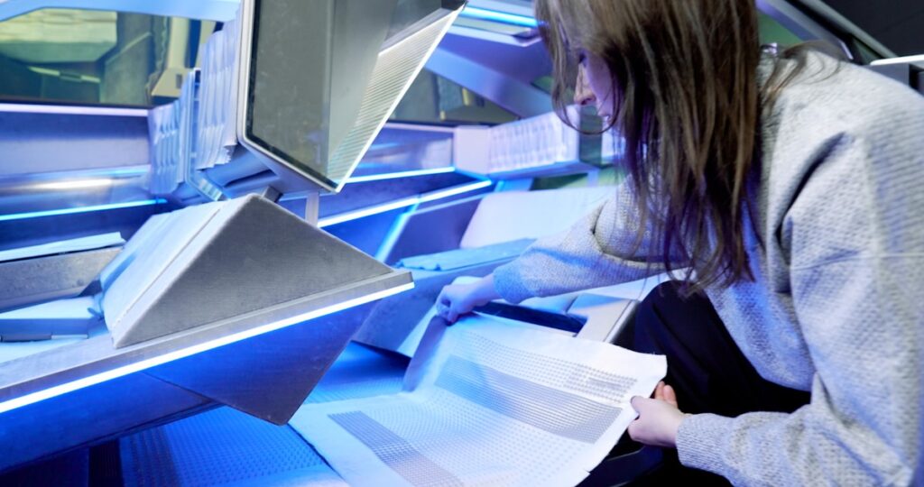 Peugeot heeft de 3DFashion technologie van Stratasys, waarmee je direct op textiel print, ingezet voor de conceptauto Inception. Dit interieur zet de toon voor de toekomstige elektrische modellen van de Franse autobouwer.