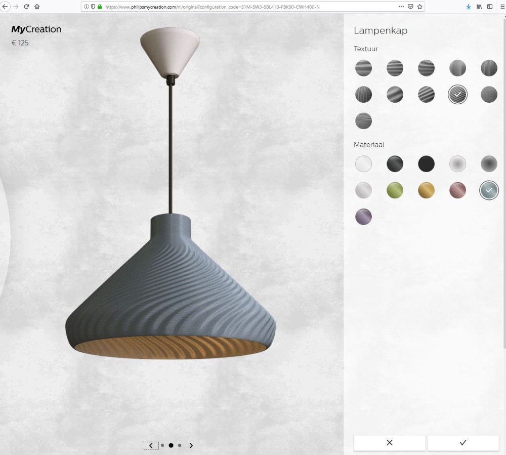 Signify heeft op de Internationale Dag van het Licht het pilot project Philips MyCreation gelanceerd. Via een speciale website creëren consumenten hun eigen hanglamp qua vorm, grootte, kleur, textuur en het patroon. Vervolgens wordt de lamp 3D geprint. Gepersonaliseerde lampen on demand,