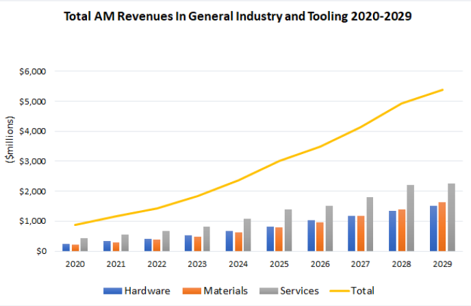 Een van de meest voorkomende toepassingen van 3D printen met polymeer is momenteel de productie van tooling. SmarTech Analysis heeft over deze markt deze week een apart rapport gepubliceerd, waarin wordt gekeken naar de groei van additive manufacturing in de algemene industrie en de toolingmarkt. Industriële producenten zoeken in toenemende mate naar mogelijkheden om hun supply chains te digitaliseren. Dit leidt ertoe dat in de algemene en de gereedschappenindustrie steeds meer bedrijven additive manufacturing inzetten. Deze deelmarkt zal dit decennium groeien naar een omvang van $5,48 miljard in 2029. Dit jaar is deze markt nog net geen miljard dollar groot. In dit cijfer zit zowel het 3D printen met metaal als met kunststof.