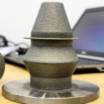 Een heel andere toepassing van het hybrideconcept van Trumpf is dat je meerdere metalen in één werkstuk combineert. De installatie die Trumpf voor het LMD-proces levert, heeft een mengunit voor de poeders met maximaal vier containers. “In principe kunnen wij onze eigen legering maken, door tot vier poeders te mengen”, legt Antonio Candel-Ruiz uit. Dat is vrij nauwkeurig regelbaar. Je kunt echter ook per laag de samenstelling van het poeder variëren. Trumpf heeft op deze manier al Inconel 718, Stellite 6 en RVS 240 gecombineerd in één werkstuk. De minimale laagdikte bedraagt 0,3 mm.