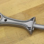 De meest interessante toepassing is volgens Candel-Ruiz de hybride component. Waarom zou je het volledige werkstuk opbouwen als dat kostbaar en tijdrovend is? Is het niet beter om bijvoorbeeld met gieten of smeden een basisvorm te maken waar je additief materiaal aan toevoegt? Antonio Candel-Ruiz: “Je maakt de onderdelen zoveel mogelijk conventioneel en voegt daar met additive manufacturing de geometrie aan toe die je conventioneel niet kunt maken. Bijvoorbeeld een structuur op een gietstuk. Of je gebruikt een basismodel om via LMD verschillende varianten te maken, zonder dat je voor elke variant een aparte gietmatrijs nodig hebt.” Een voorbeeld is een krukasonderdeel, gemaakt met aluminium gieten. Voor extra sterkte brengt Trumpf hier met LMD twee ribben op aan, een bewerking die slechts enkele minuten in beslag neemt maar wel voor een veel hogere belastbaarheid van het onderdeel zorgt.
