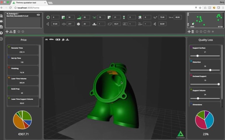 Het Belgische softwarebedrijf Thrinno lanceert op RapidPro de Thrinno Fast Quote, een offertegenerator voor 3D metaalprinten. De software berekent online prijzen voor 3D metaalprinten. Ook geeft het algoritme feedback over het design. Via het online platform kunnen servicebedrijven direct een offerte maken voor hun klant.