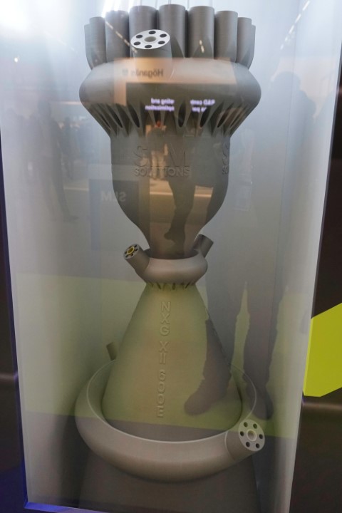 De oplossing is dat SLM Solutions de laserunit, de core, loskoppelt van het volume van de bouwkamer. Het flexibele systeem dat ontwikkeld is, laat toe om de fysieke beperkingen van de huidige machines los te laten en grote componenten te produceren met additive manufacturing. Bijvoorbeeld met een diameter van 1,8 meter en een hoogte van 1,6 meter. Of langere onderdelen tot 3 meter lengte. Veel groter dan het 1,5 meter hoge ruimtevaartonderdeel dat op de verlengde NXG XII 600 machine is geprint (foto hieronder).