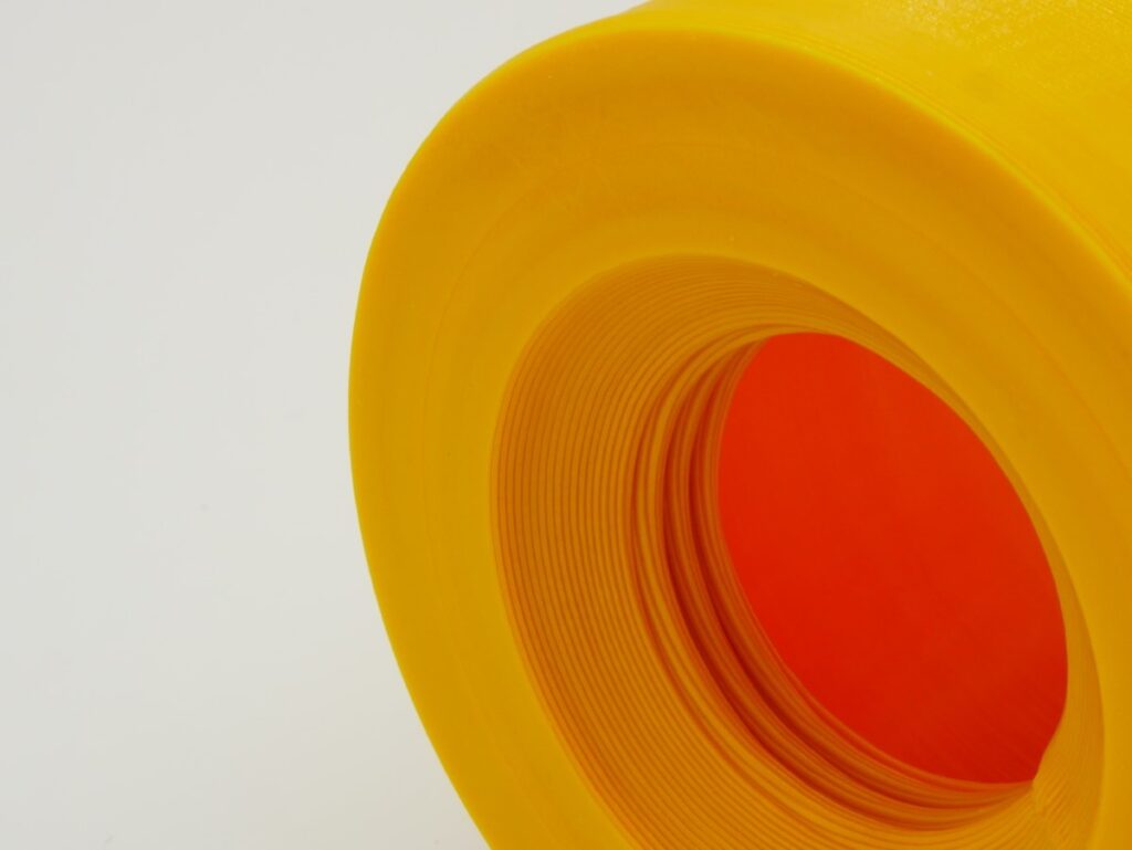 De ontwikkelaars stappen bij hun nieuwe nozzle af van de ronde vorm. Ze kiezen voor een rechthoekige vorm. De reden hiervoor is dat de ‘spaghetti’ die je nu print, eigenlijk helemaal niet goed is voor de hechting van de verschillende lagen. Dit is een van de zwakke punten van FFF printen. “Cilindrische vormen die naast elkaar worden geplaatst, vormen een weefpatroon”, legt Gerolf Vanacker uit. “Zelfs als deze licht platgedrukt worden door de nozzle, het vlak waar beide tracks elkaar raken blijft klein. Elke cross sectie heeft een elliptische vorm en alleen de middelste sectie is sterk.” De technologie van Sculpman maakt de trackbreedte onafhankelijk van de laaghoogte, wat resulteert in onder andere betere oppervlakken.