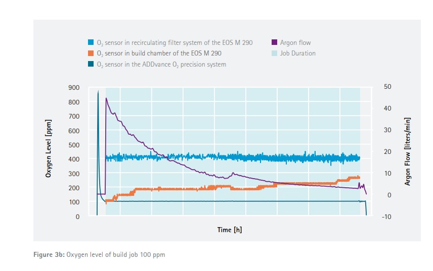 Fabrikanten van laser poederbed metaalprinters doen er alles aan om het zuurstofgehalte tijdens het printproces laag te houden. Bij de EOS machines, die onder argon of stikstof printen, geldt doorgaans als grens 1000 ppm. Kleine schommelingen in de zuurstofconcentratie kunnen bij legeringen die gevoelig zijn voor zuurstof tot mindere mechanische eigenschappen leiden. Bovendien kan minder poeder hergebruikt worden door proces geïnitieerde veroudering van het poeder.