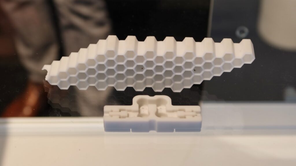 Het gaat hier om filament waarin minstens 50% poederaandeel met het betreffende materiaal zit. De onderdelen moeten dus uitgebakken worden. 3DCeram is erin geslaagd om de debinding stap te integreren in te sinterstap. Het voordeel van het CNC-gereedschap dat de M.A.T. printer in een 3-assige freesmachine verandert, is volgens 3DCeram dat je de onderdelen terwijl ze nog net gesinterd zijn al kunt nabewerken voor een hogere oppervlaktenauwkeurigheid. In deze toestand zijn de materialen zachter.