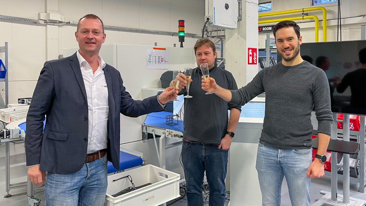 FOTO Van links naar rechts Stefan Rink (CEO AM-Flow), Stijn Paridaens (CEO Ziggzagg) en Michaël Vandezande (COO Ziggzagg).